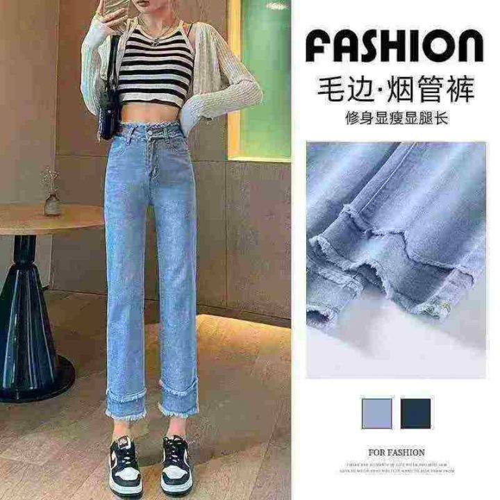 高腰显瘦弹力毛边烟管牛仔裤,单款单色,独立包装,数...