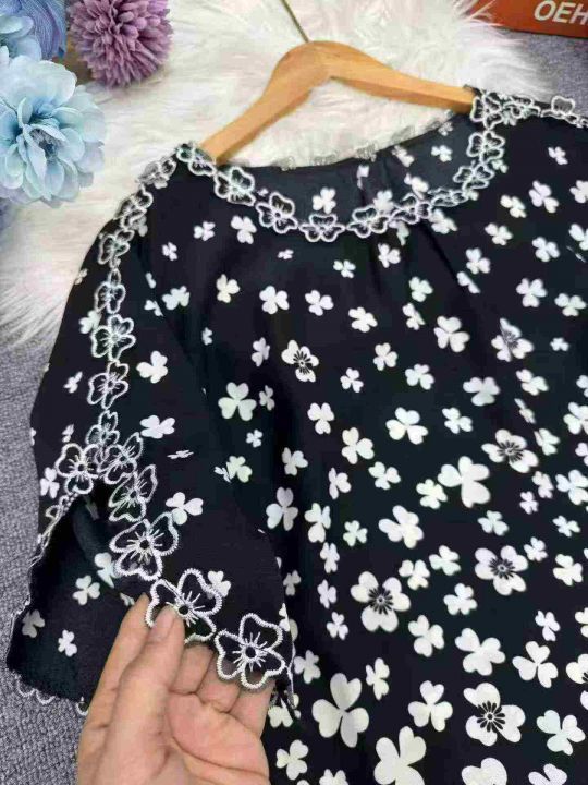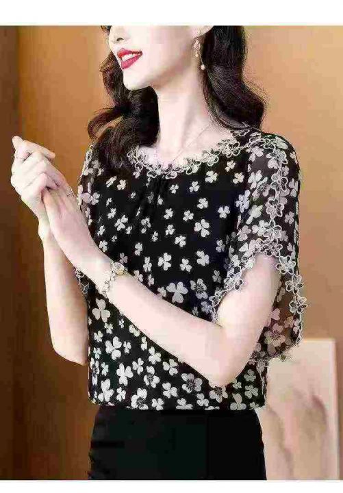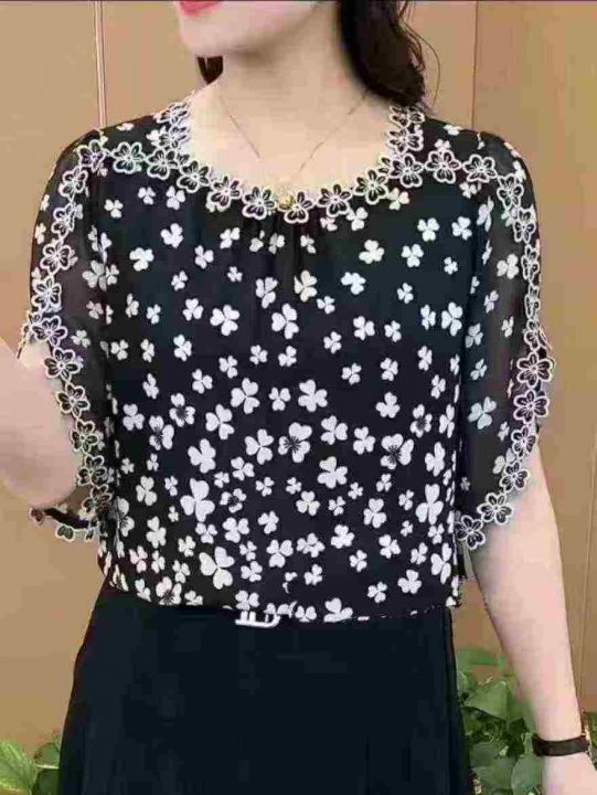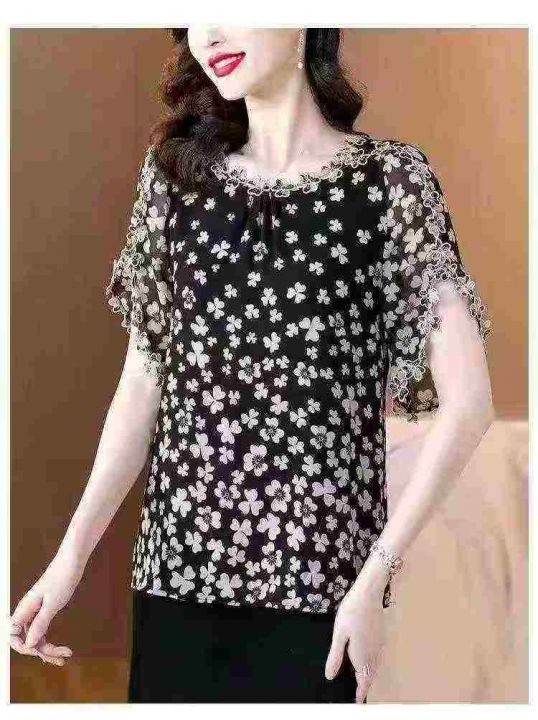 2026夏季新款时尚印花刺绣花边领短袖上衣宽松版 数量:234条 码数:3XL-6xL码 独立包装(货号401#5)