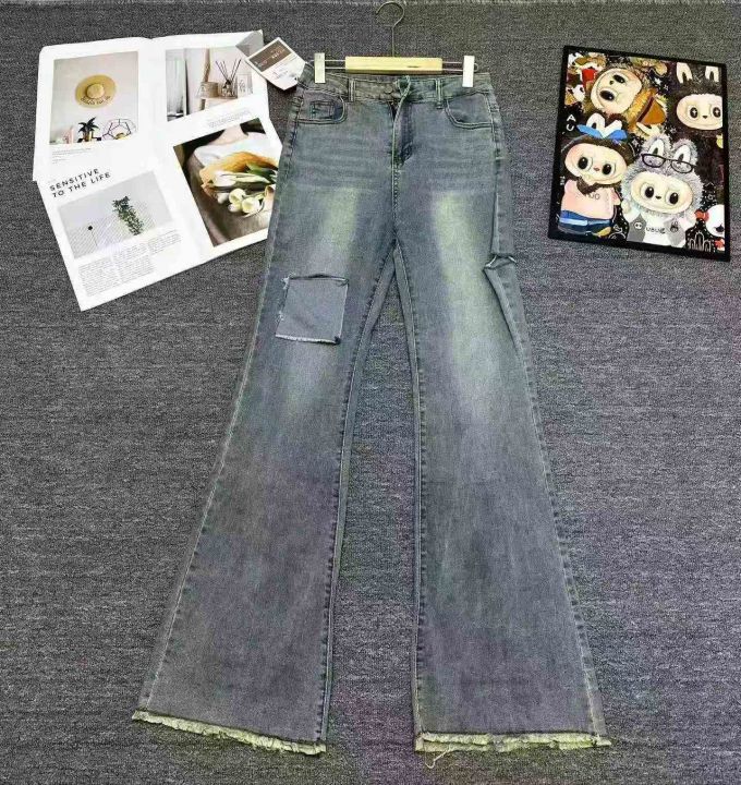 万佳档口下架260件左右高品质春秋款美式复古毛边设计高腰显瘦喇叭拖地牛仔裤,S-XL,带防盗扣,实体店️入品质,独立包装带吊牌