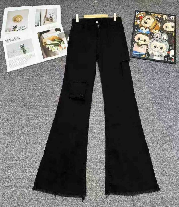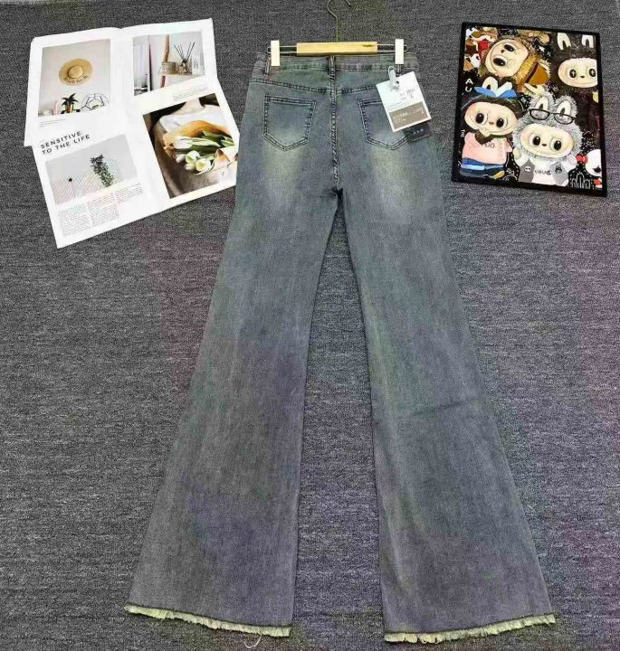 万佳档口下架260件左右高品质春秋款美式复古毛边设计高腰显瘦喇叭拖地牛仔裤,S-XL,带防盗扣,实体店️入品质,独立包装带吊牌