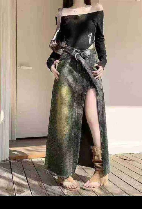 春夏季新款设计款不规则大码胖MM开叉牛仔长裙,独立包装带吊牌,码数XL--5X...