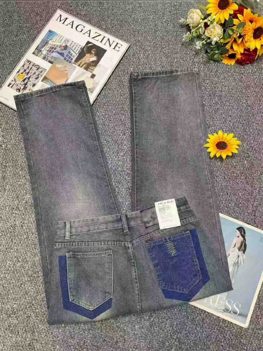 春季新款网红复古洗水棉设计款微胖MM直筒阔腿牛仔裤,...