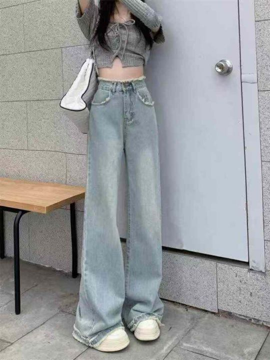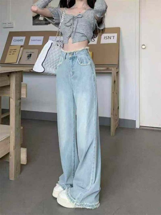 春季新款设计感毛边提直筒阔腿牛仔裤,独立包装带腰卡...
