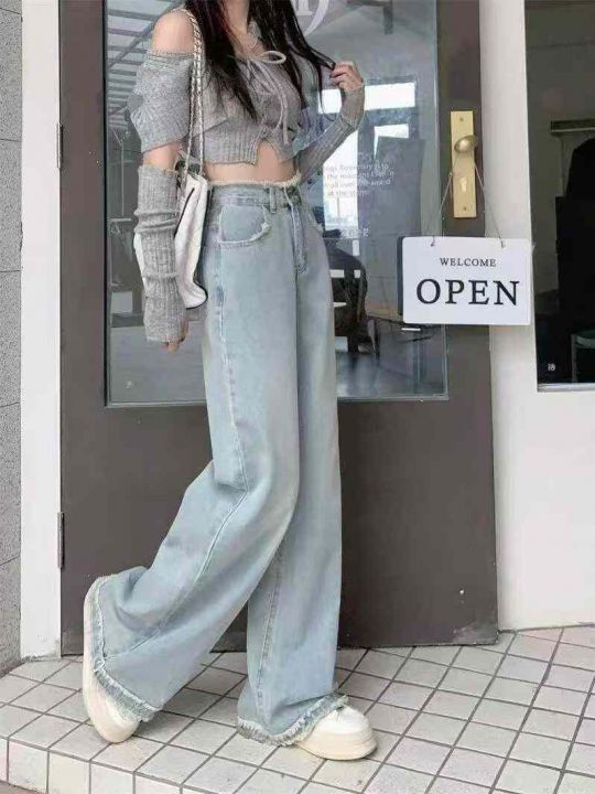 春季新款设计感毛边提直筒阔腿牛仔裤,独立包装带腰卡,码数M-XL码, 170件左右,全清9.9元超低价秒杀!