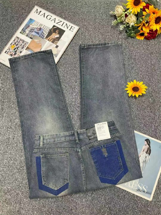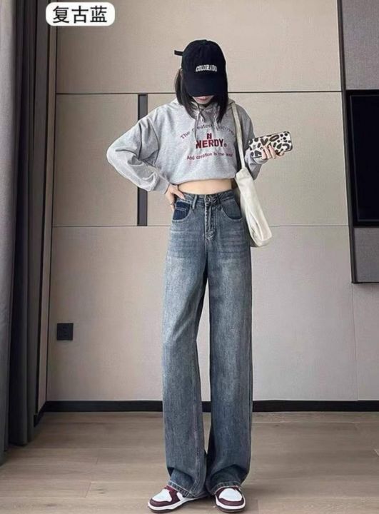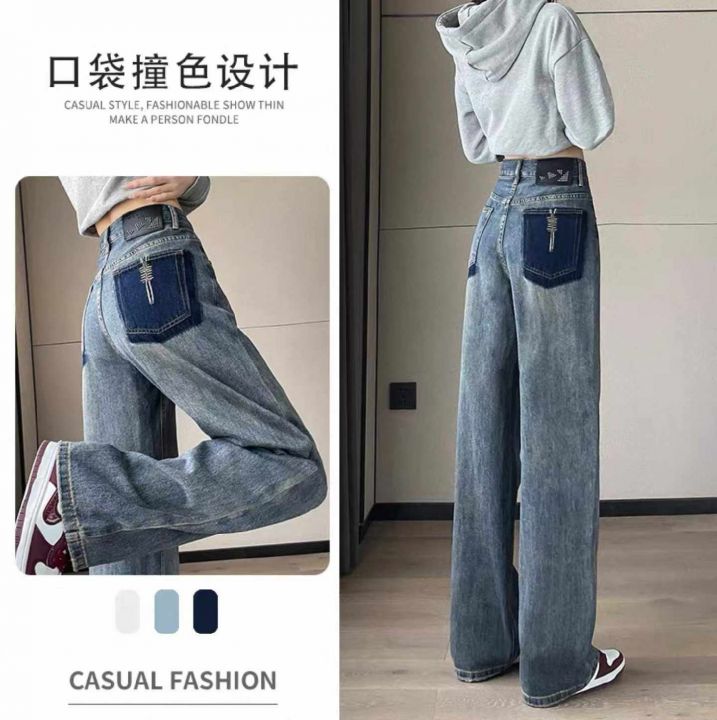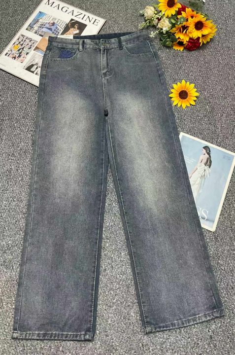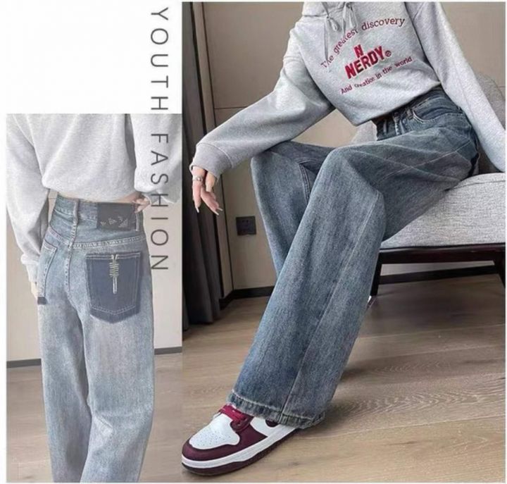 春季新款网红复古洗水棉设计款微胖MM直筒阔腿牛仔裤,...