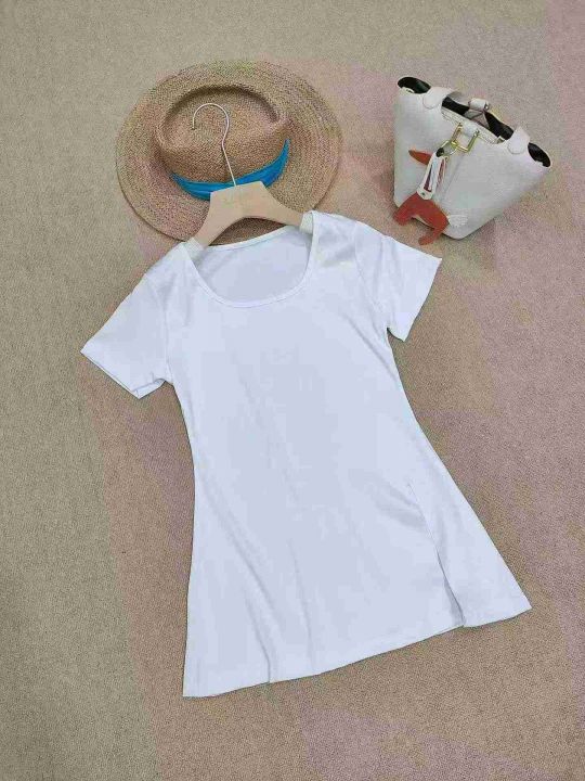 [月亮]:夏季开衩设计中长款短袖上衣