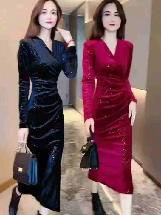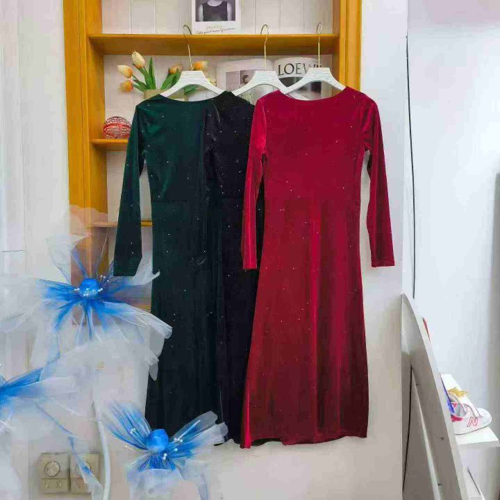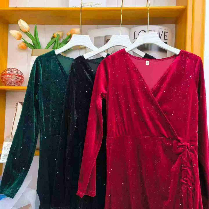 ① 金丝绒满天星气质收腰显瘦开叉连衣长裙!独立包装,整款三色,码数S-L,数量120件左右,全清7.8元