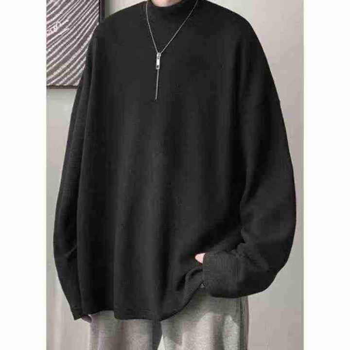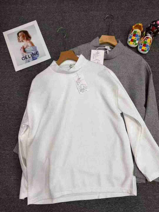 1075件,华夫格春秋长袖T恤男女潮牌纯色半高领打底衫美式卫衣,独立包装,码数:M-3XL,全清4.8元,分货+1