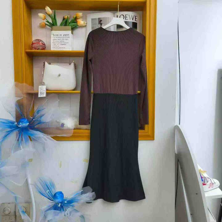 ① 高级感交叉扭结翻领长袖鱼尾连衣长裙!高弹力,独立包装,码数S-XL,数量700件左右,全清8.8元