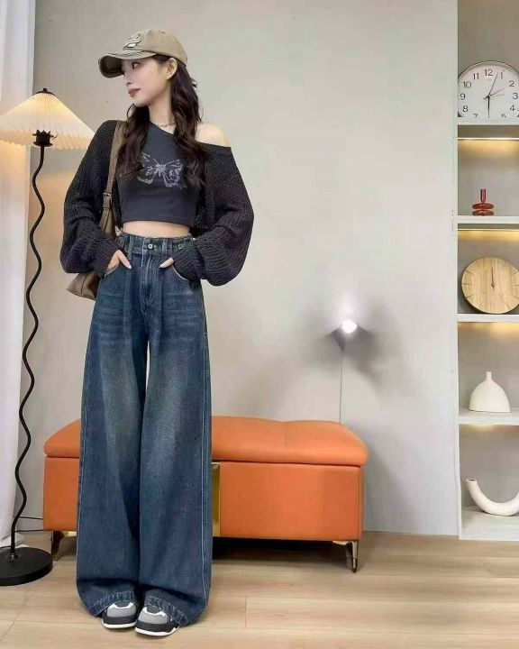 春季新款网红复古洗水棉可调节直筒阔腿牛仔裤,独立包装带吊牌,码数XS-L码...