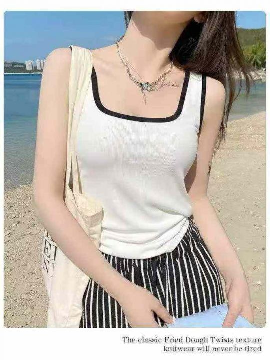 清3.8分货➕0.5新款方领撞色背心女内搭春夏新款宽肩带吊带上衣,数量850件...