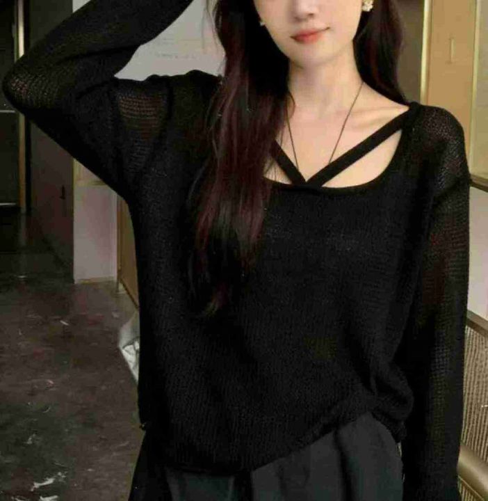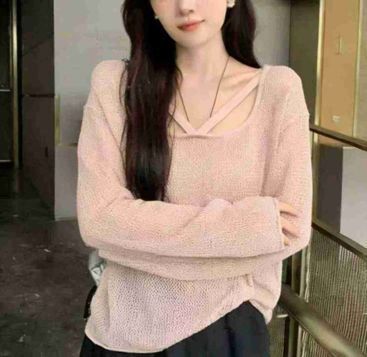 春夏季新款网红镂空设计款宽松百搭长袖针织衫,独立包...