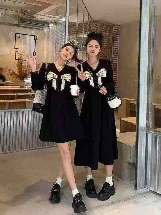 夏季新款法式赫本风黑色蝴蝶结设计感闺蜜姐妹装减龄小...
