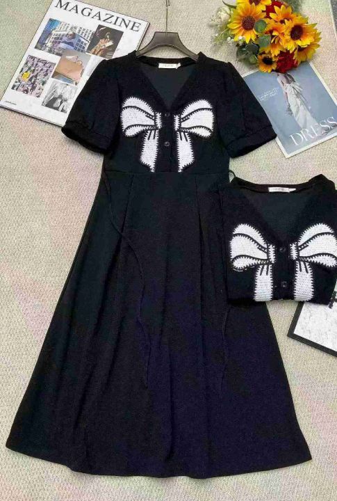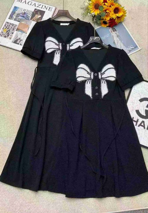 夏季新款法式赫本风黑色蝴蝶结设计感闺蜜姐妹装减龄小众气质收腰显瘦连衣裙,独立包装带吊牌,可穿100--125斤左右,148件,全清9.9元超低价秒杀!