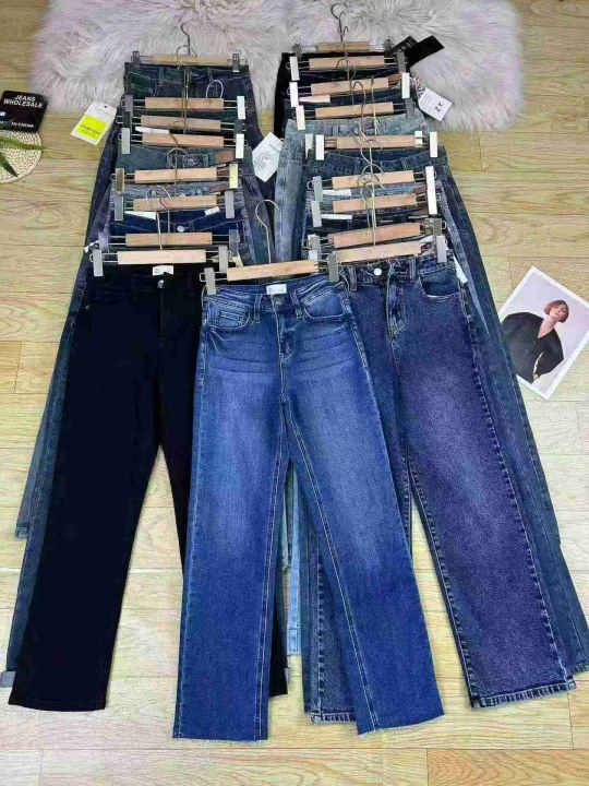 #Vente en gros de jeans pour femmes女士直筒烟管阔...