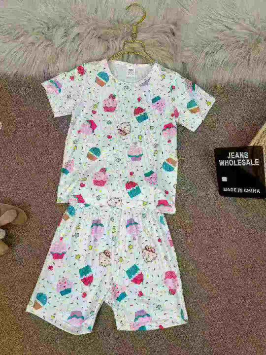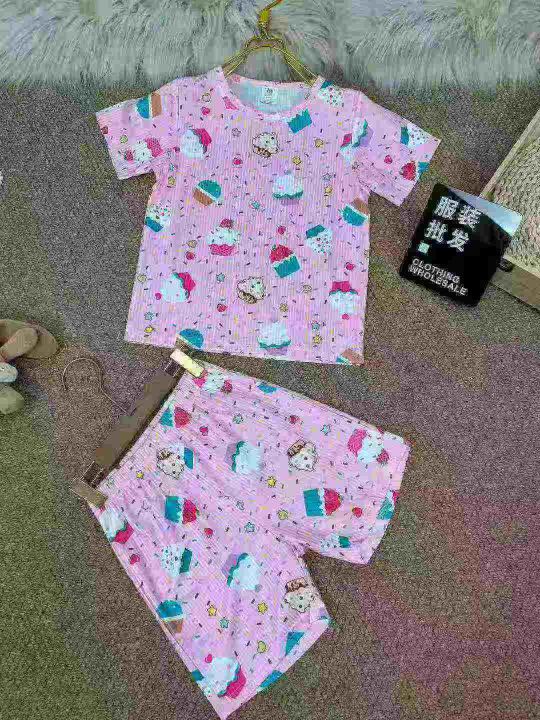 童装短袖短裤冰丝套装,数量260套,单款两个颜色,尺寸90~120码,独立拉链袋原包装。低价批发,8.9秒杀