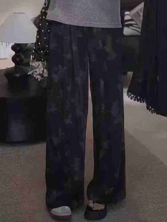 ☕️水墨蝴蝶国风阔腿裤女夏季休闲新中式扎染冰丝裤36...
