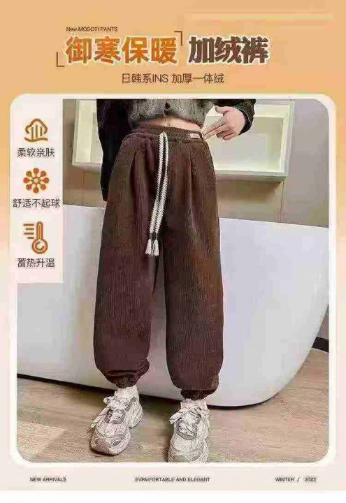 ☕️童装裤子灯芯绒中大童一体绒加厚百搭款休闲束脚裤...