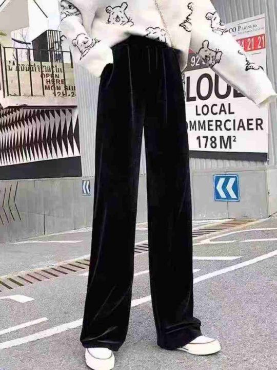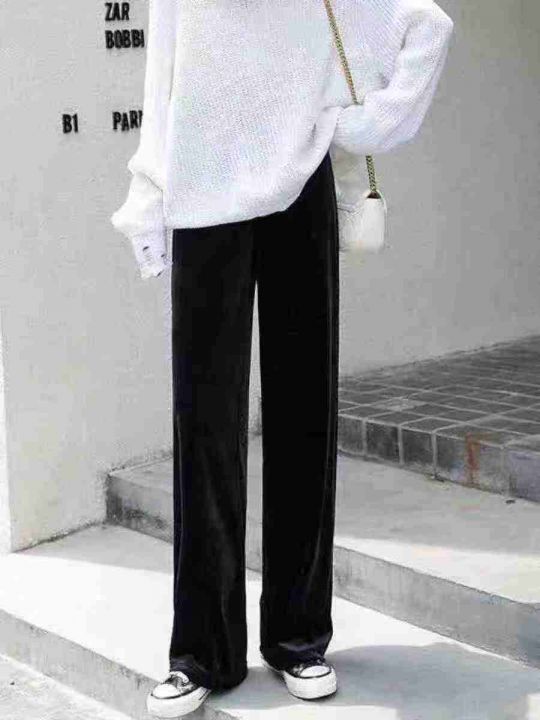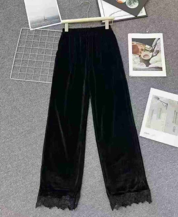 ☕️黑色金丝绒阔腿裤女秋冬加绒加厚直筒裤慵懒高腰显瘦休闲裤,带蕾丝裤脚150条,纯色基础款1019条 一起全清12.8元 分货+1元