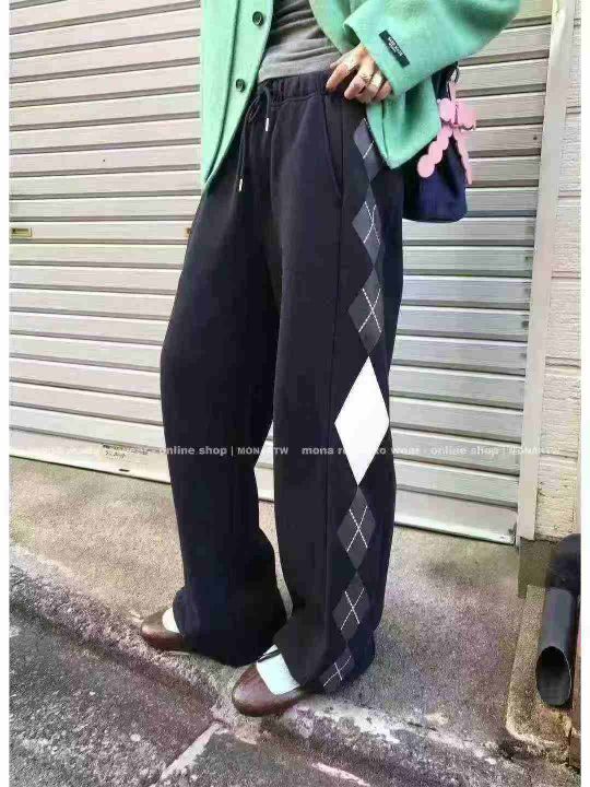 ☕️男女同款运动休闲裤复古几何印花宽松慵懒超火的高...