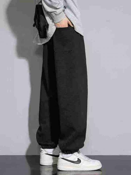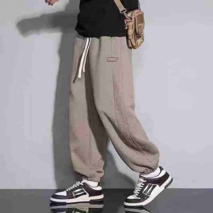 ☕️美式纯色束脚卫裤男春秋季休闲裤裤华夫格不加绒卫...