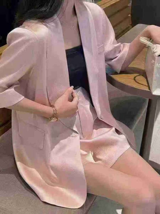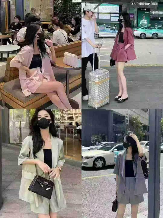 180套杭州FXQ品牌 韩版夏季新款设计感轻奢冰感短袖西装外套短裤两件套,XS-S码 XS为主 XS码穿100斤以内(偏大一码)XS外套可穿100-120斤,带吊牌带衣架防尘袋 箱装,品质很好!
