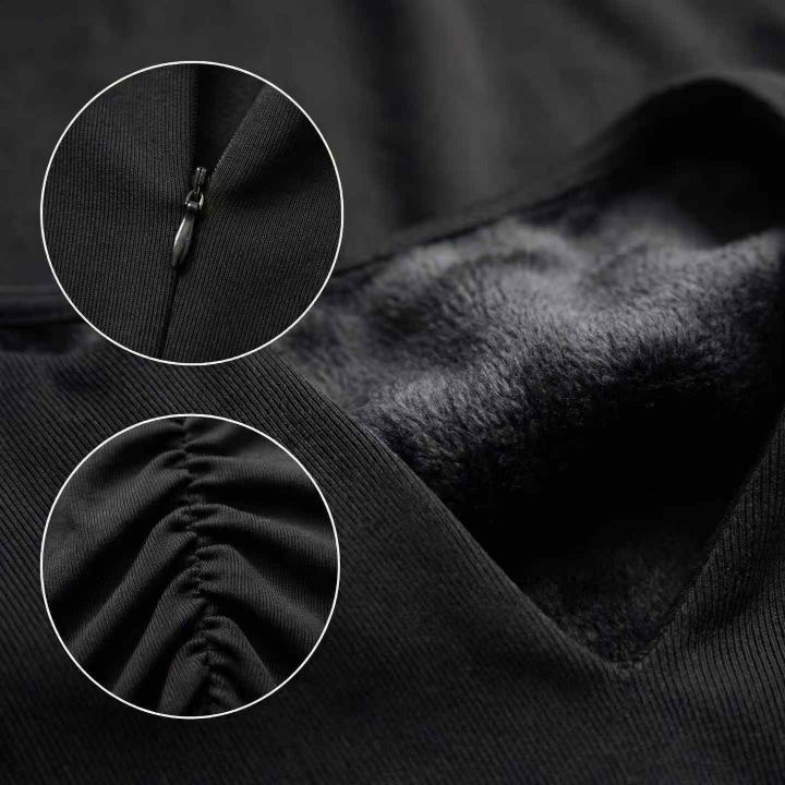 高品质女装整款加绒连衣裙 黑色V领侧打揽修身包臀裙 加绒显瘦长袖紧身辣妹包臀气质连衣裙