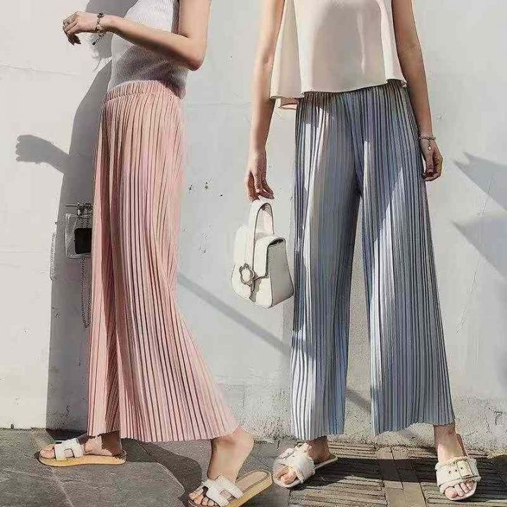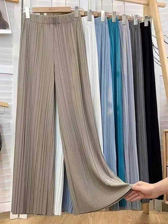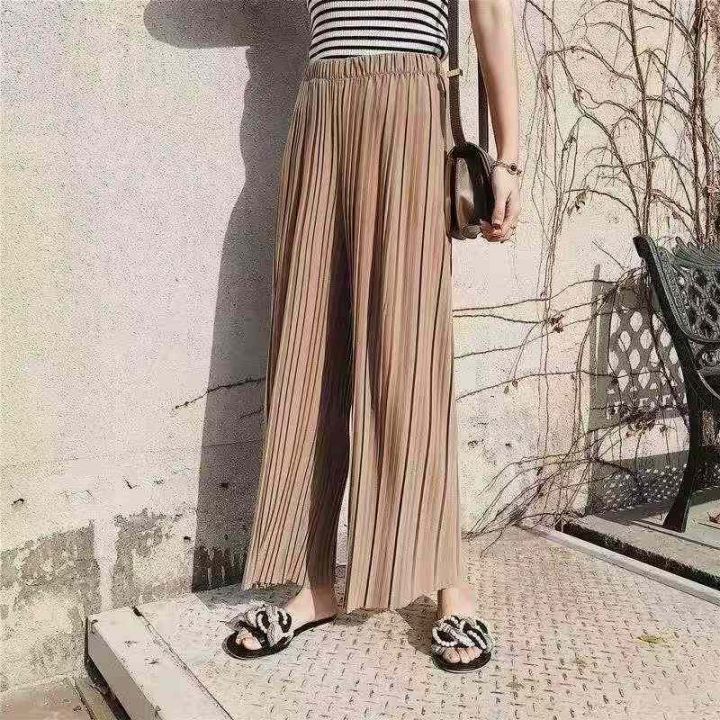 夏季热销冰丝阔腿裤☕️2600条全清8.8 分货9.9,独立包装,十几个色,清凉垂感冰丝阔腿裤女夏季薄款宽松显瘦高腰直筒防蚊防晒百褶八分裤