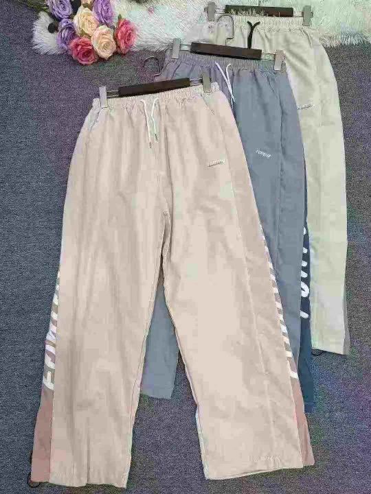 400条,港风休闲裤女夏季新款宽松阔腿裤薄款抽绳束脚拼接学生运动裤,独立包装,码数S-3XL,全清7.8元,分货+0.5