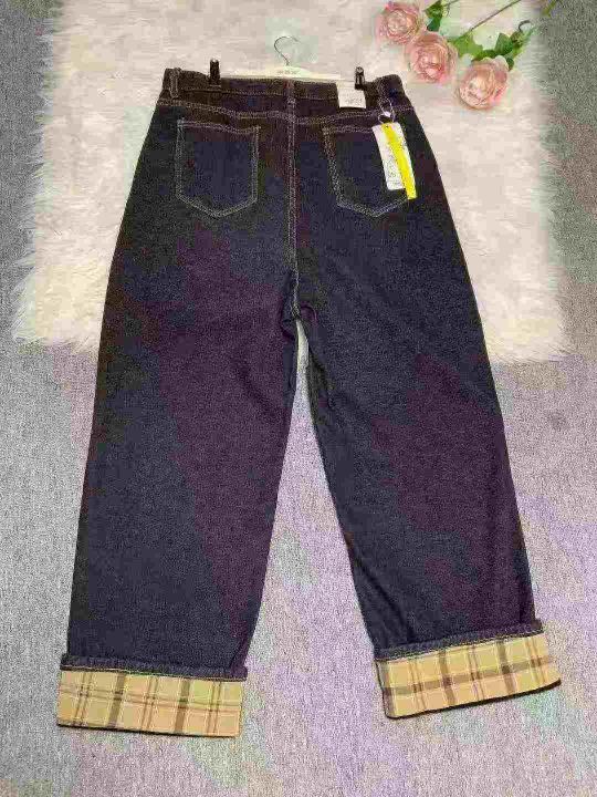 秋冬复古加绒加厚宽松显瘦牛仔裤女大码胖mm高腰直筒翻边阔腿长裤180件,独立包装带吊牌,尺码S~5XL全清福利价9.5