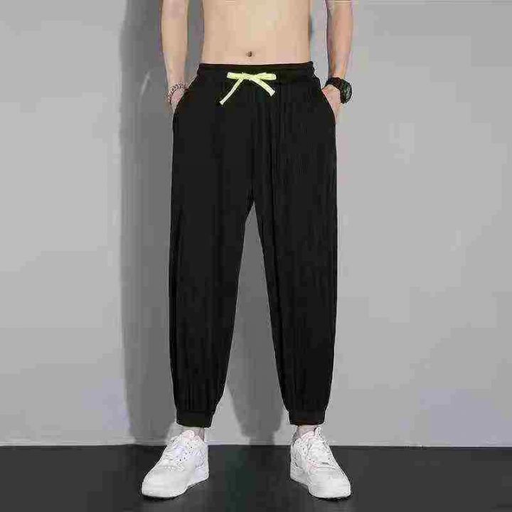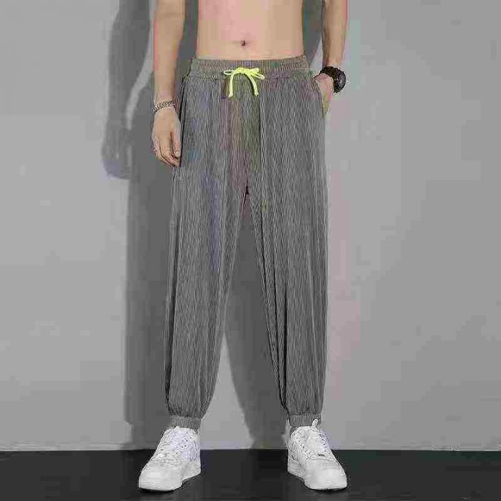 全清6.5元,6538条\'裤子夏季男休闲薄款韩版ins潮牌冰丝条纹运动大码弹力宽松哈伦裤\'分货➕0.5