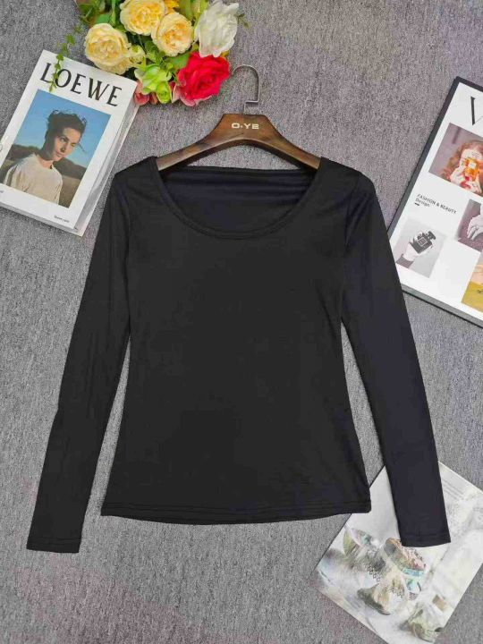 2.9清103件U型领黑色显瘦收腰百搭打底长袖,码数S-2XL...