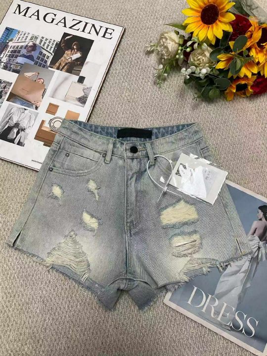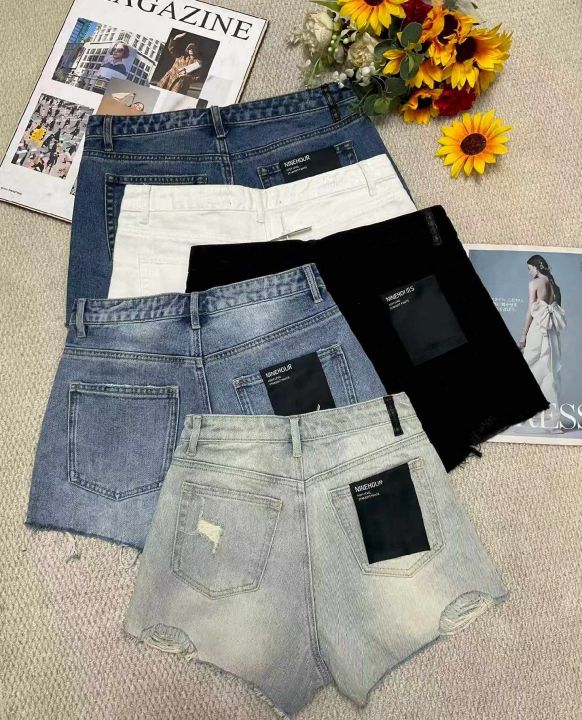 夏季新款高品质网红复古洗水棉牛仔短裤,独立包装带腰...