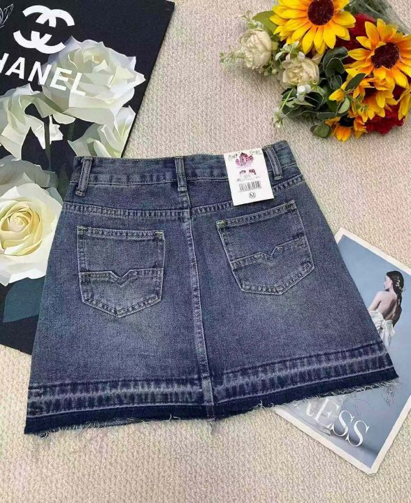 夏季新款网红复古洗水棉设计款牛仔短裙,独立包装带腰...