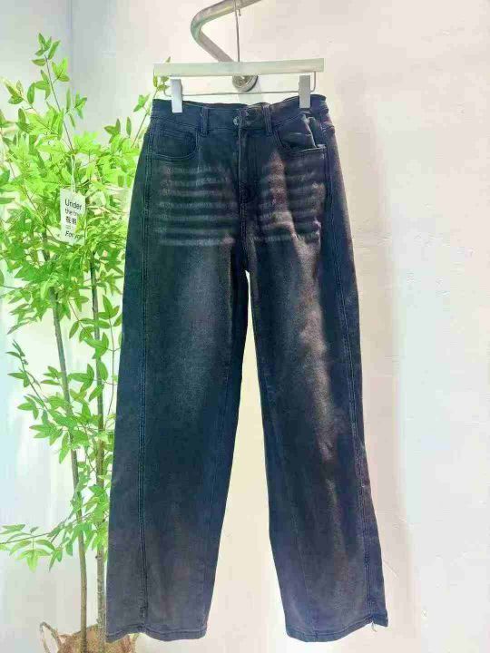 1000条美式复古高街风做旧直筒黑灰阔腿牛仔裤,质量好...