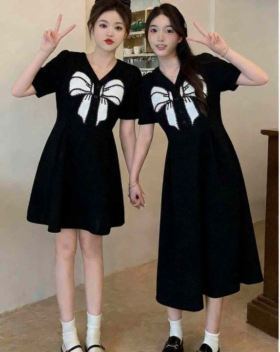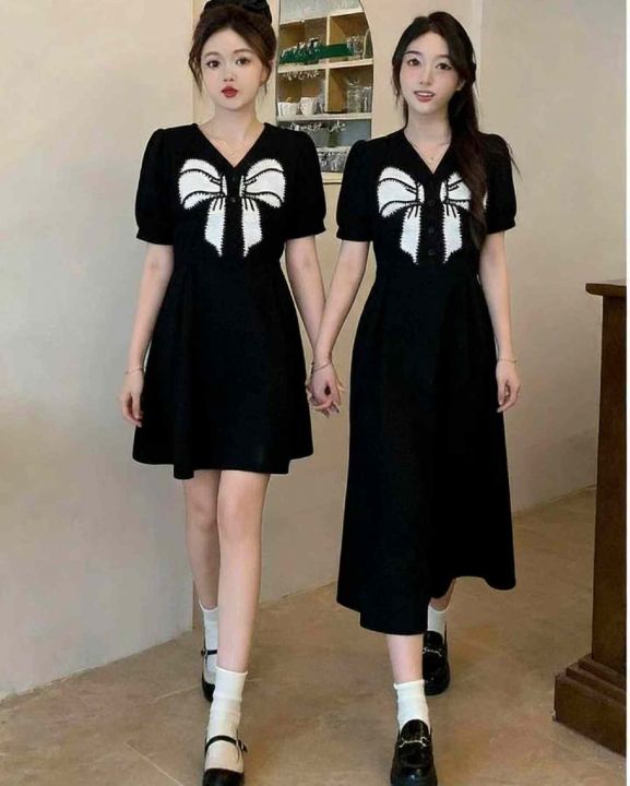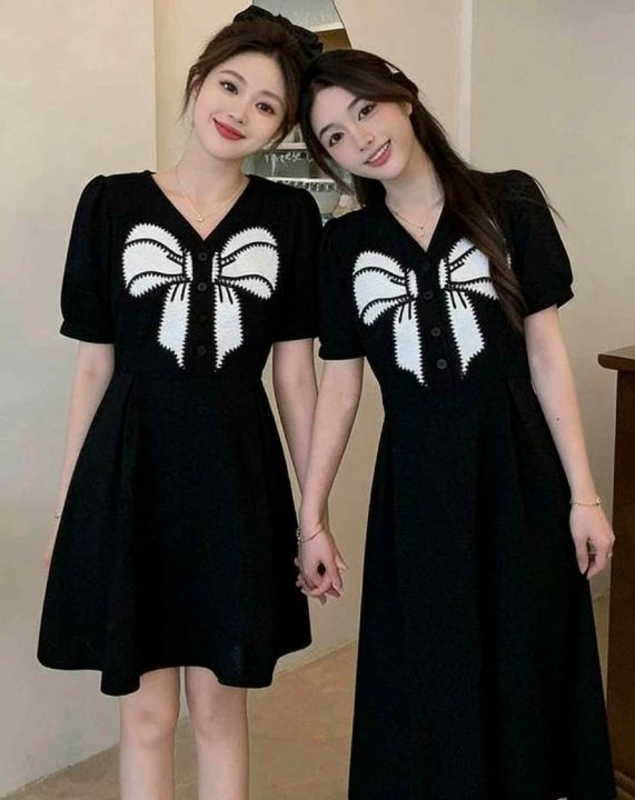 夏季新款法式赫本风黑色蝴蝶结设计感闺蜜姐妹装减龄小...