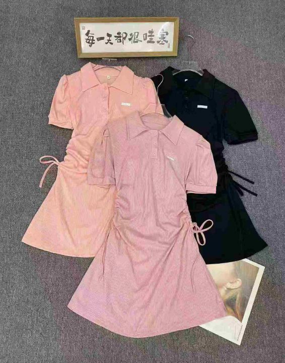 Polo领短袖连衣裙97件7.8,面料舒适有弹力,抽绳收腰...