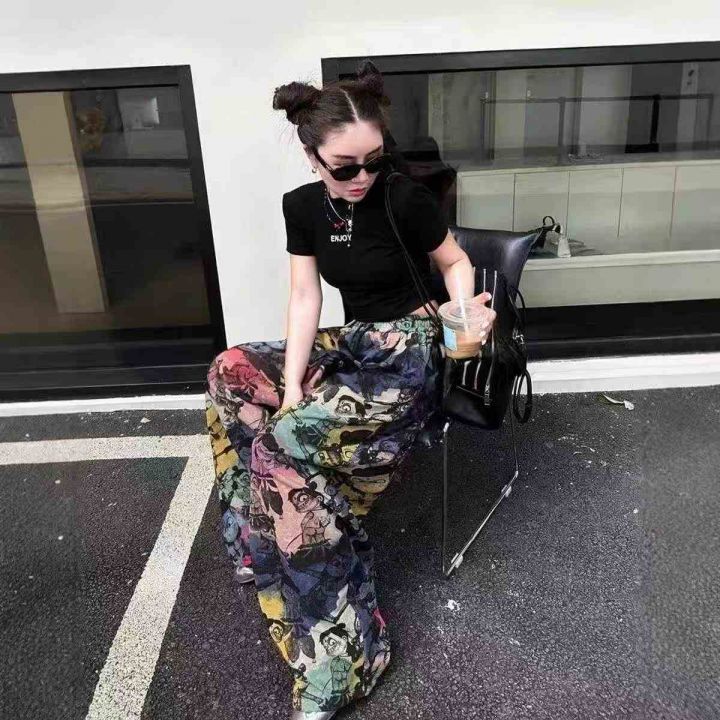 扎染哪吒图印阔腿裤975件6.5,面料舒适高弹力,松紧腰...