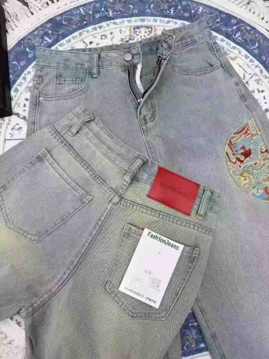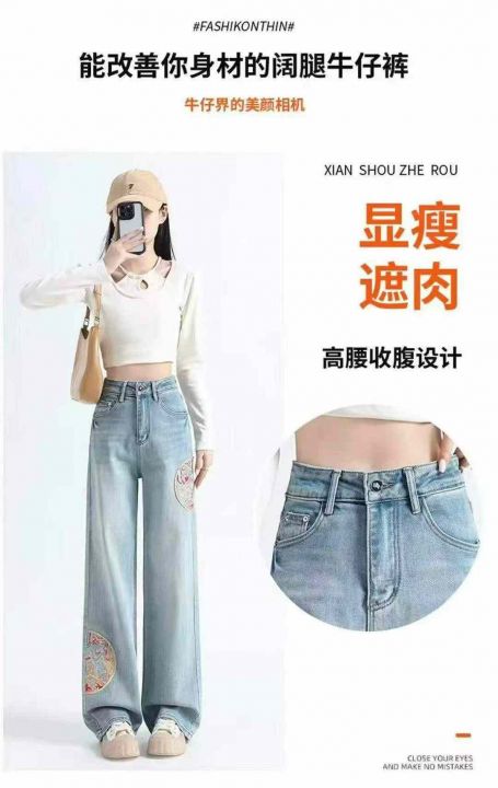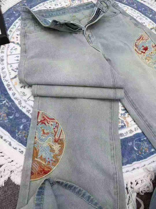 精美刺绣阔腿牛仔裤