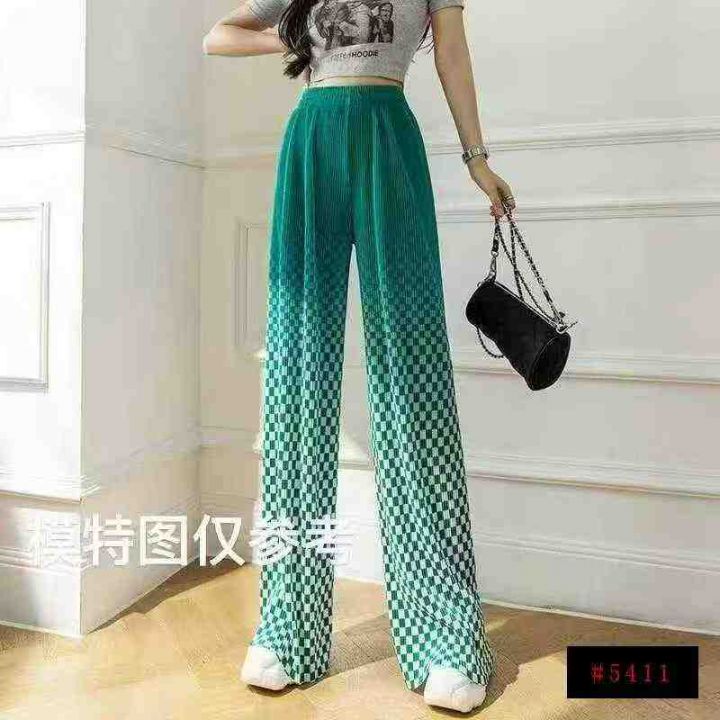 [福]205件渐变色棋盘格高腰感垂直筒裤宽松百搭休闲裤拖地长裤,整款两色,...