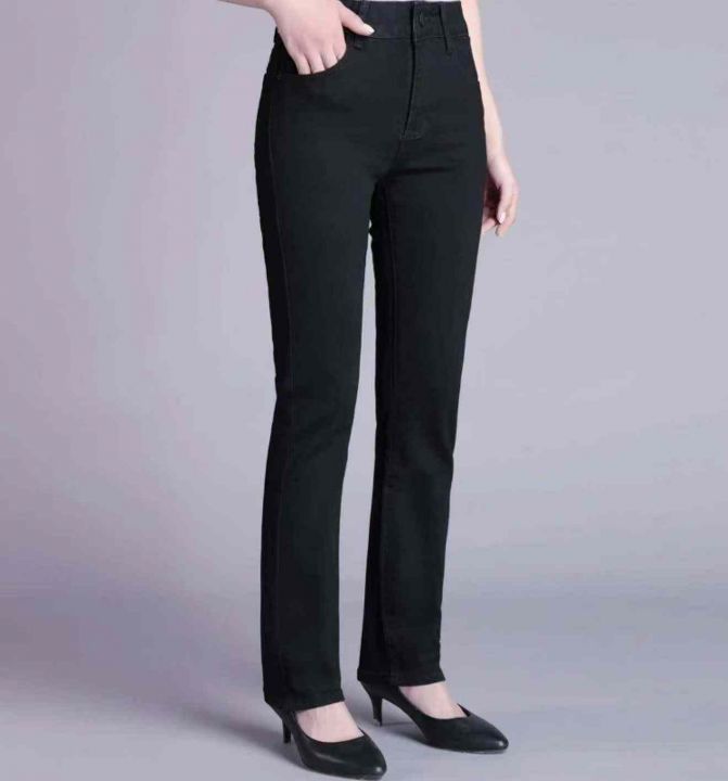 春夏季新高腰高弹力网红复古洗水棉妈妈牛仔直筒裤,独...