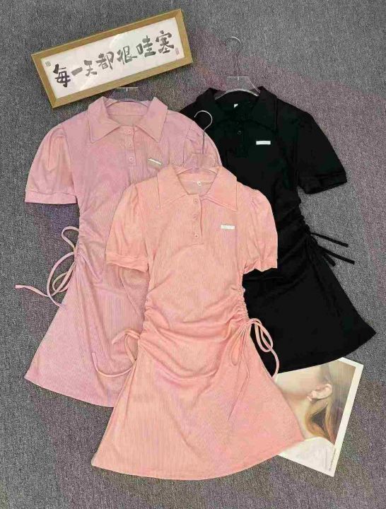 Polo领短袖连衣裙97件7.8,面料舒适有弹力,抽绳收腰...