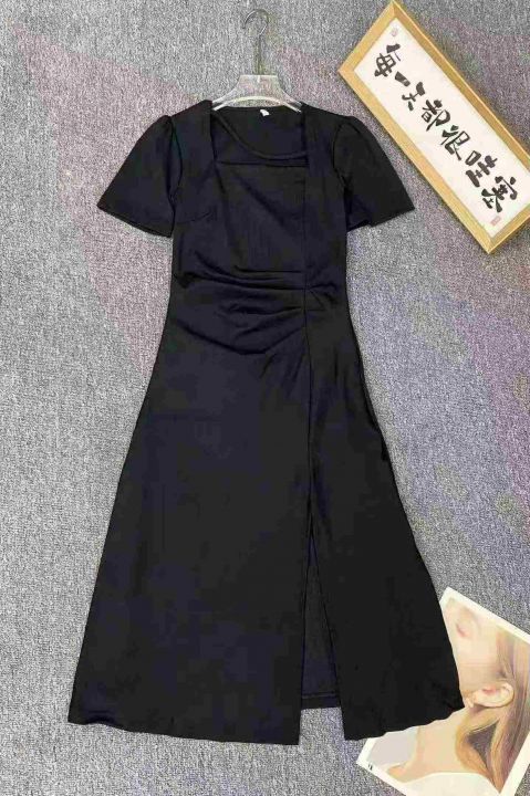 纯欲设计感方领斜条连衣裙375件8.5,