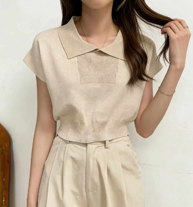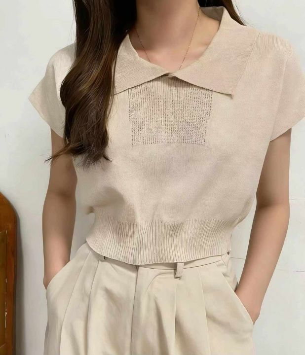 夏季新款美拉德色系Polo领薄款针织短袖T桖,独立包装...