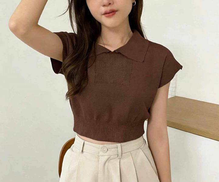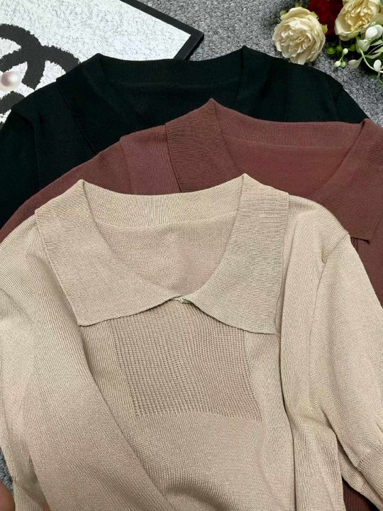 夏季新款美拉德色系Polo领薄款针织短袖T桖,独立包装,均码面料柔软舒适弹力大,232件,全清5.9元超低价秒杀!
