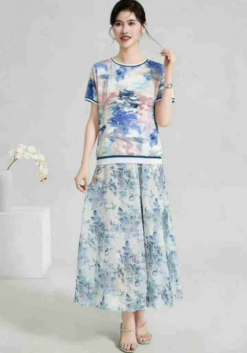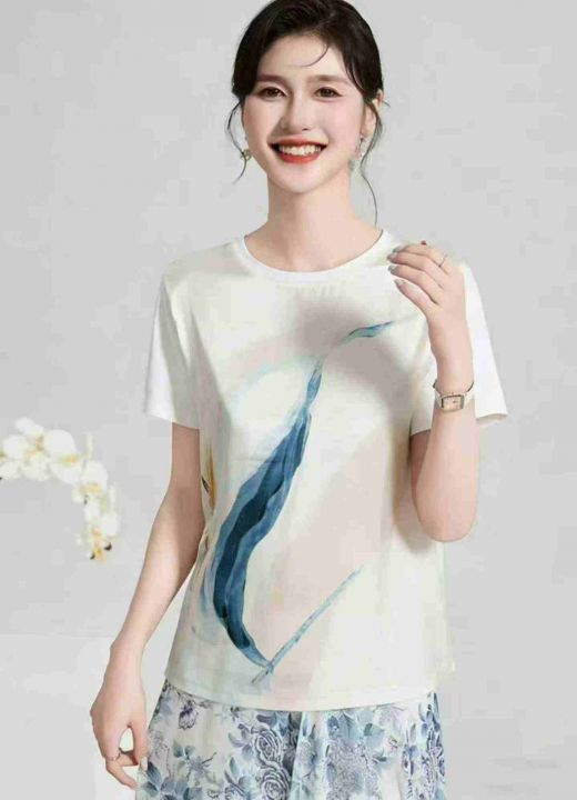 新款复古素雅印花短袖t恤女洋气修身显瘦打底上衣 数量:126条 码数:1-3码 独立包装(货号401#5)