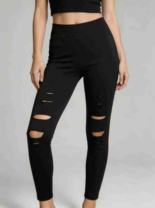 全清3.8,黑色破洞打底裤女春秋季外穿大码胖mm显瘦紧身铅笔小脚裤,码数XL-...