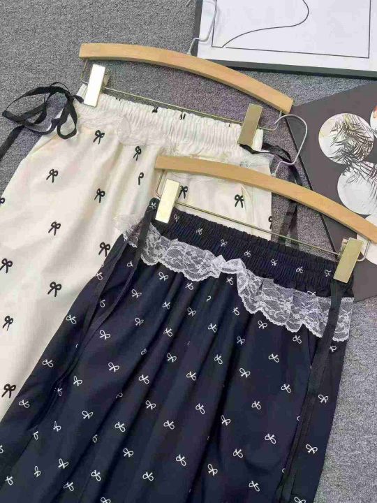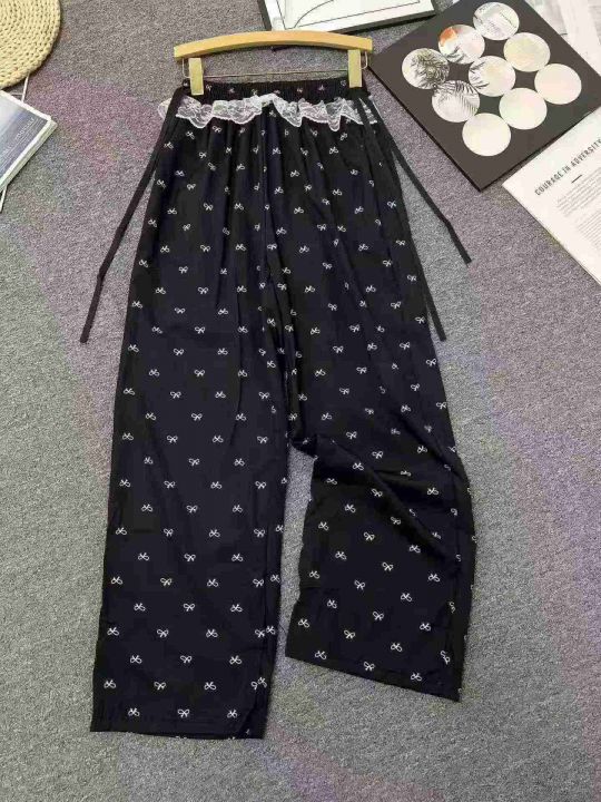☕️蕾丝拼接蝴蝶结碎花休闲裤女夏季新款设计感高腰阔...
