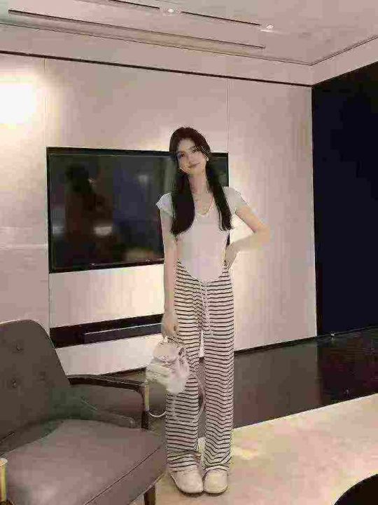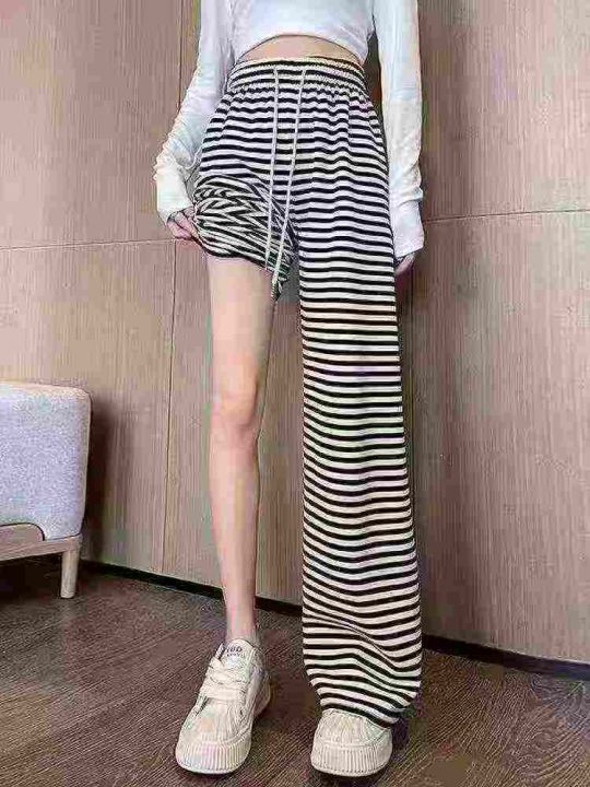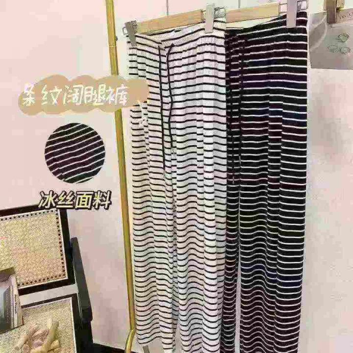 ☕️1200条全清9.5元,夏季休闲裤新款慵懒风宽松直筒高腰阔腿条纹裤子女拖地长裤,分货100件打包9.9元 ,均码 黑色 白色 冰丝面料 ,独立包装
