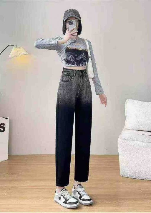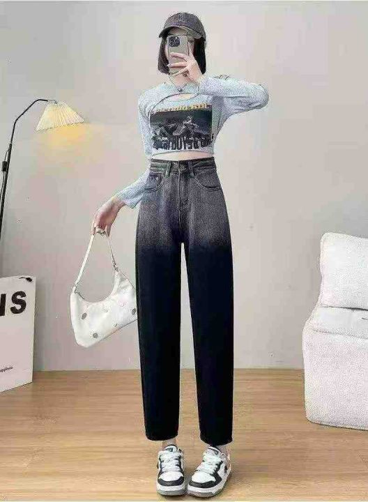 高弹力复古渐变牛仔裤女新款高腰黑色老爹牛仔裤377条...